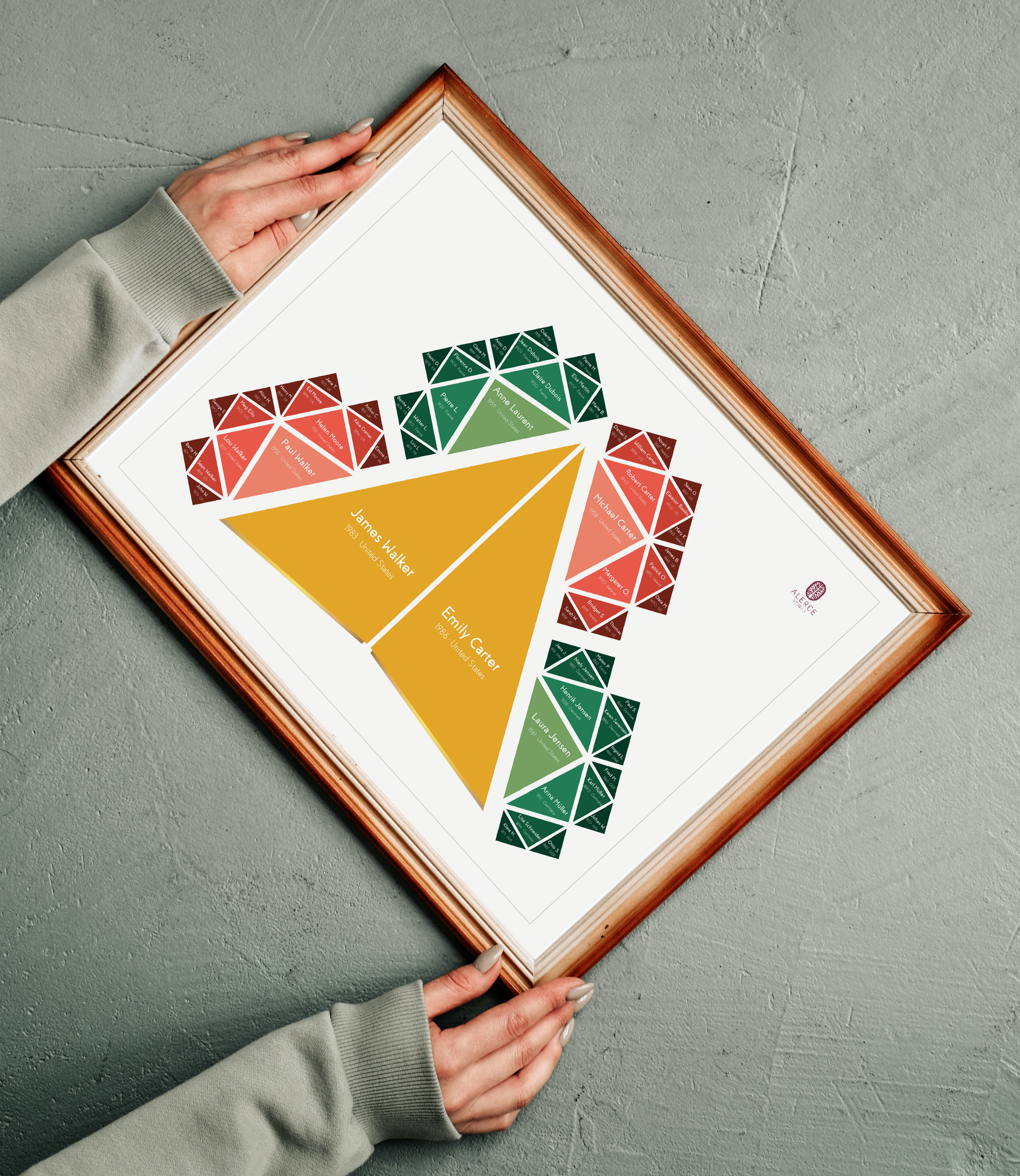 Professional genealogical research can be commissioned separately through Alerce Genealogy. Research and design can be developed alongside one another.