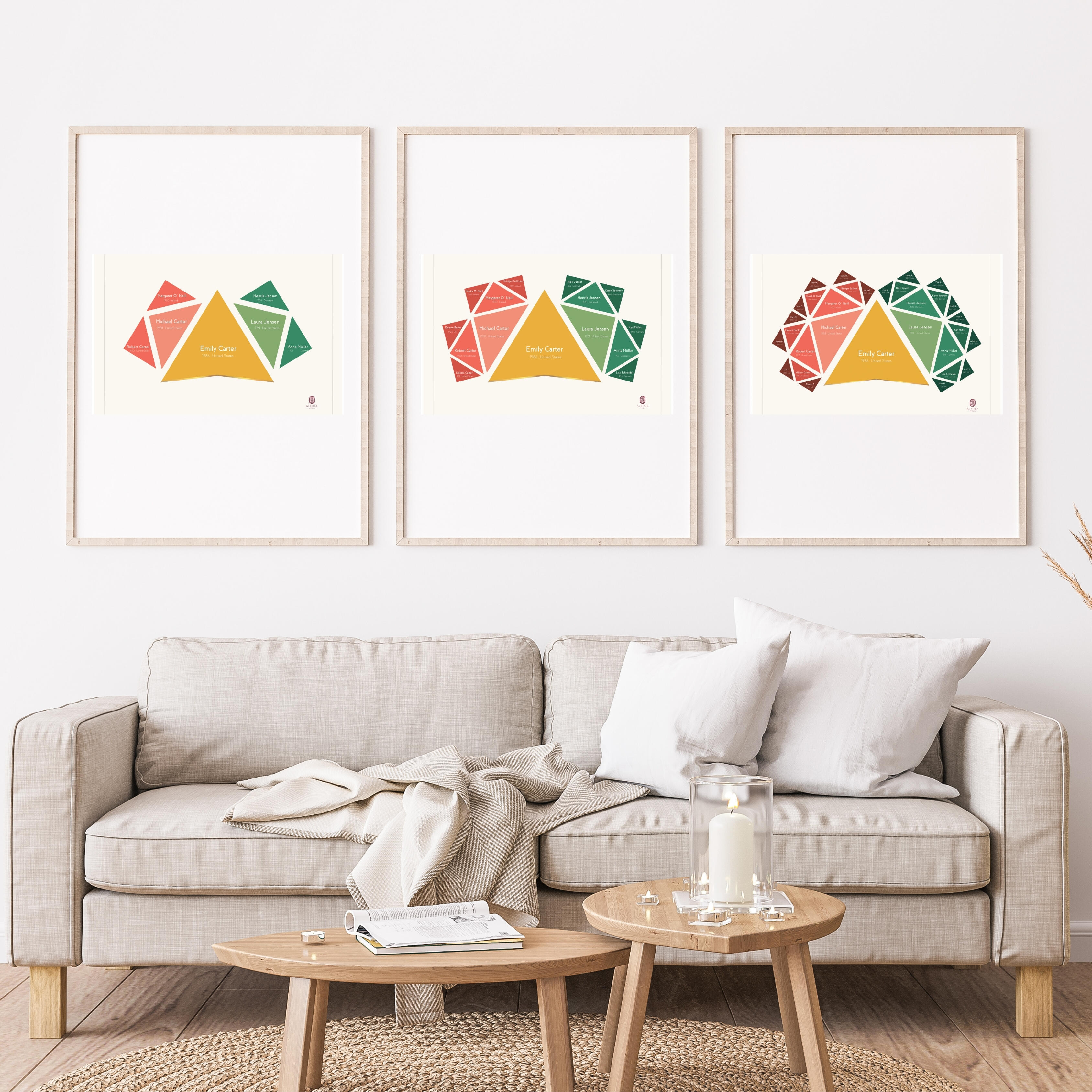 A custom genealogical composition designed from the information you provide. It is structured editorially and produced as a lasting visual object.