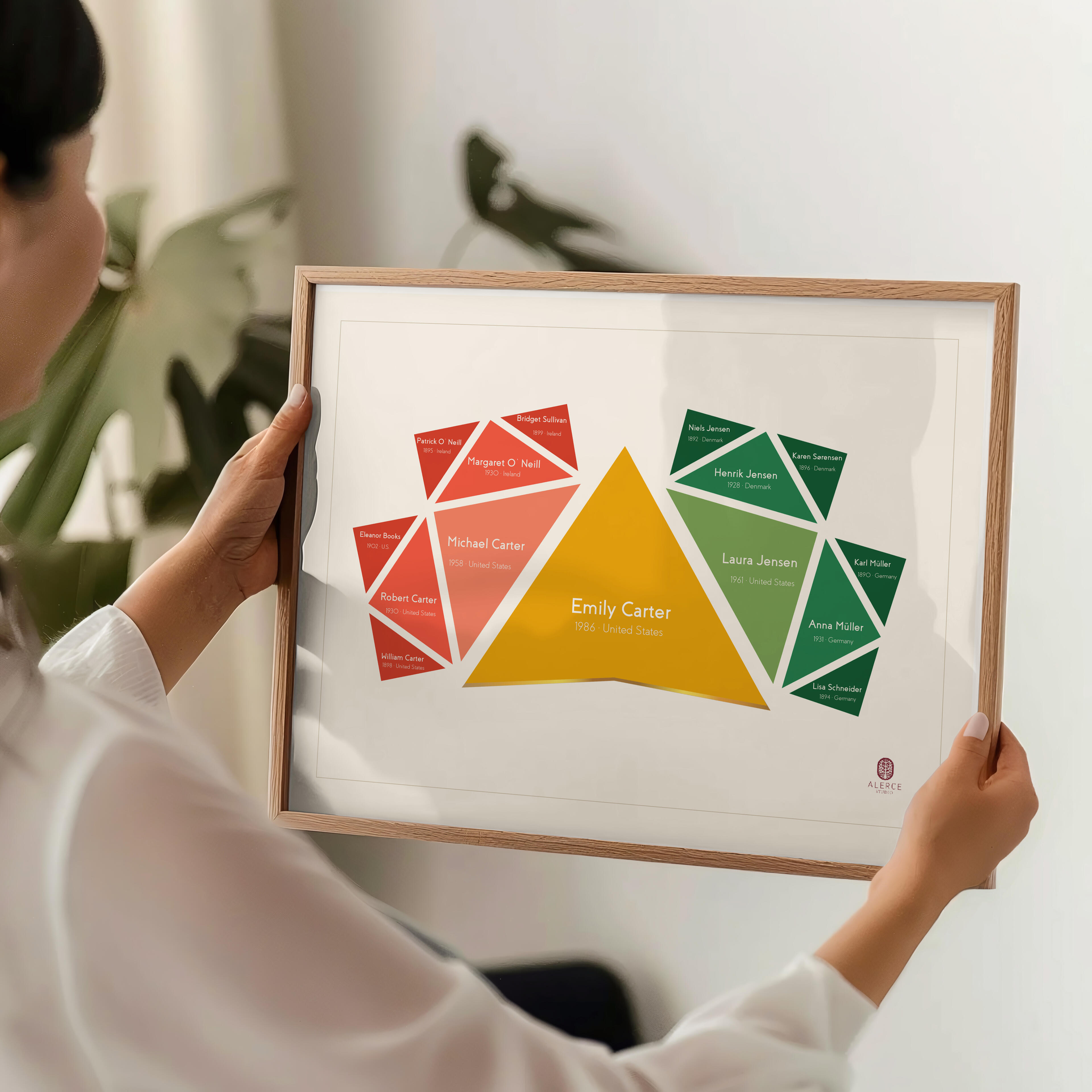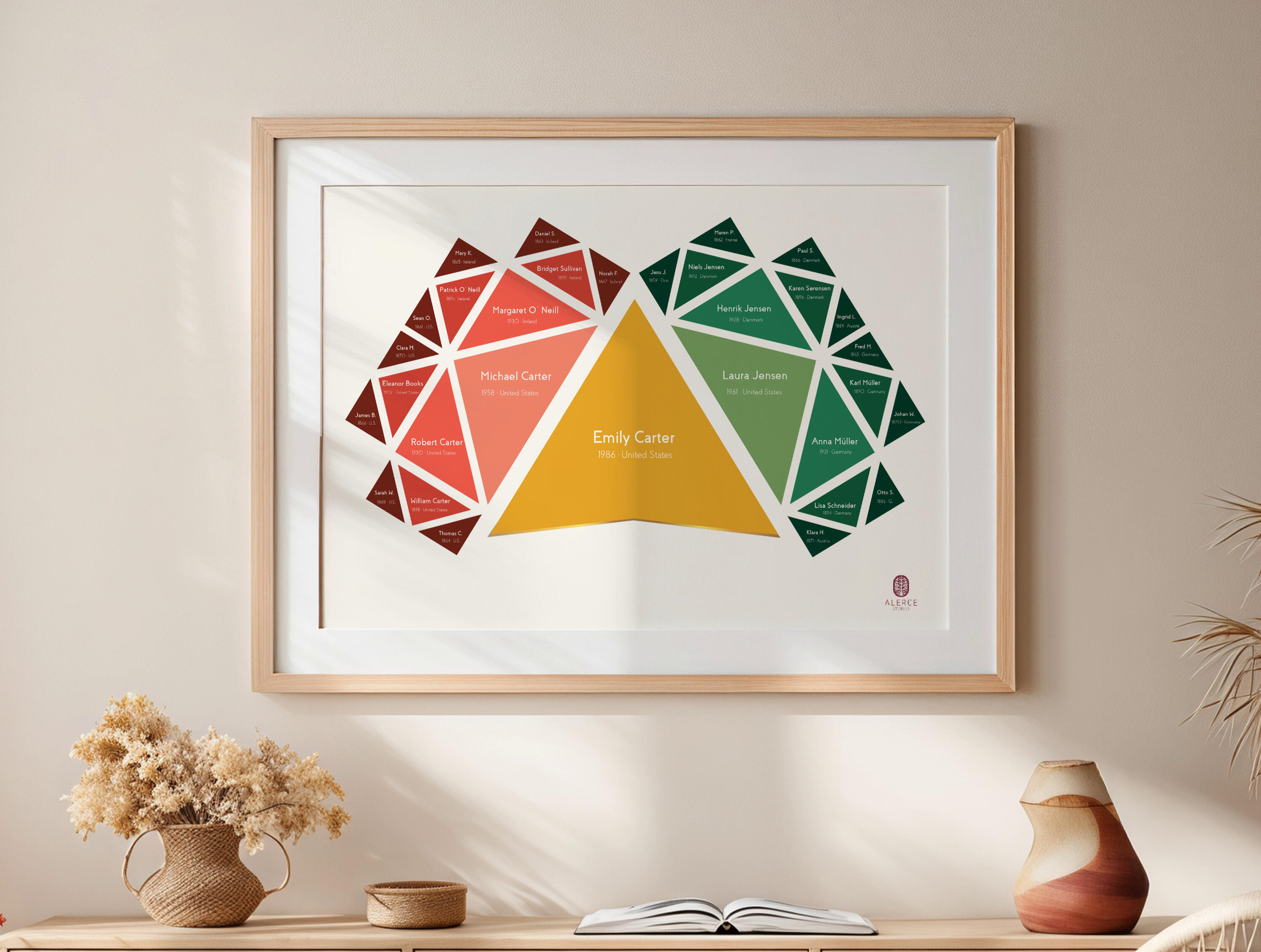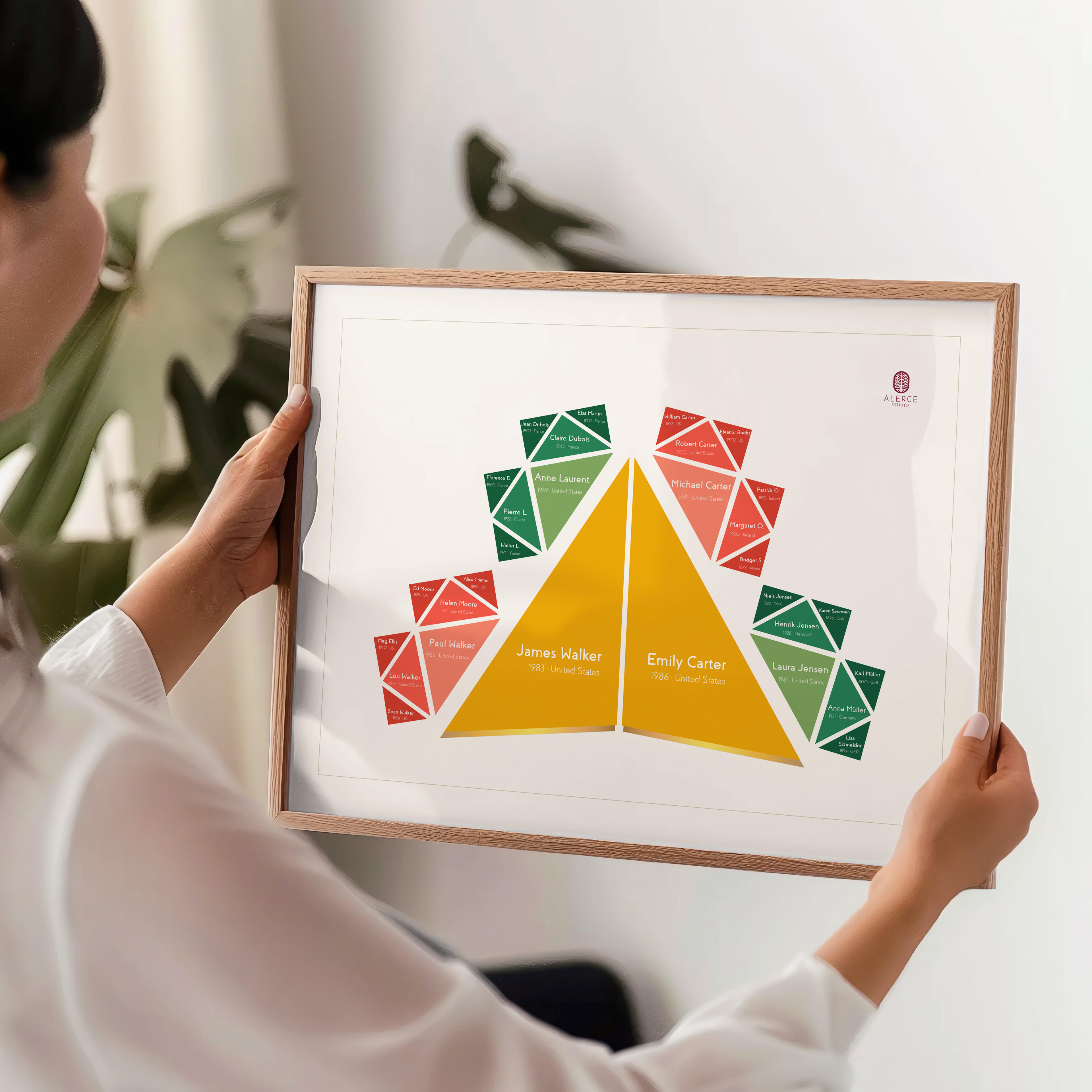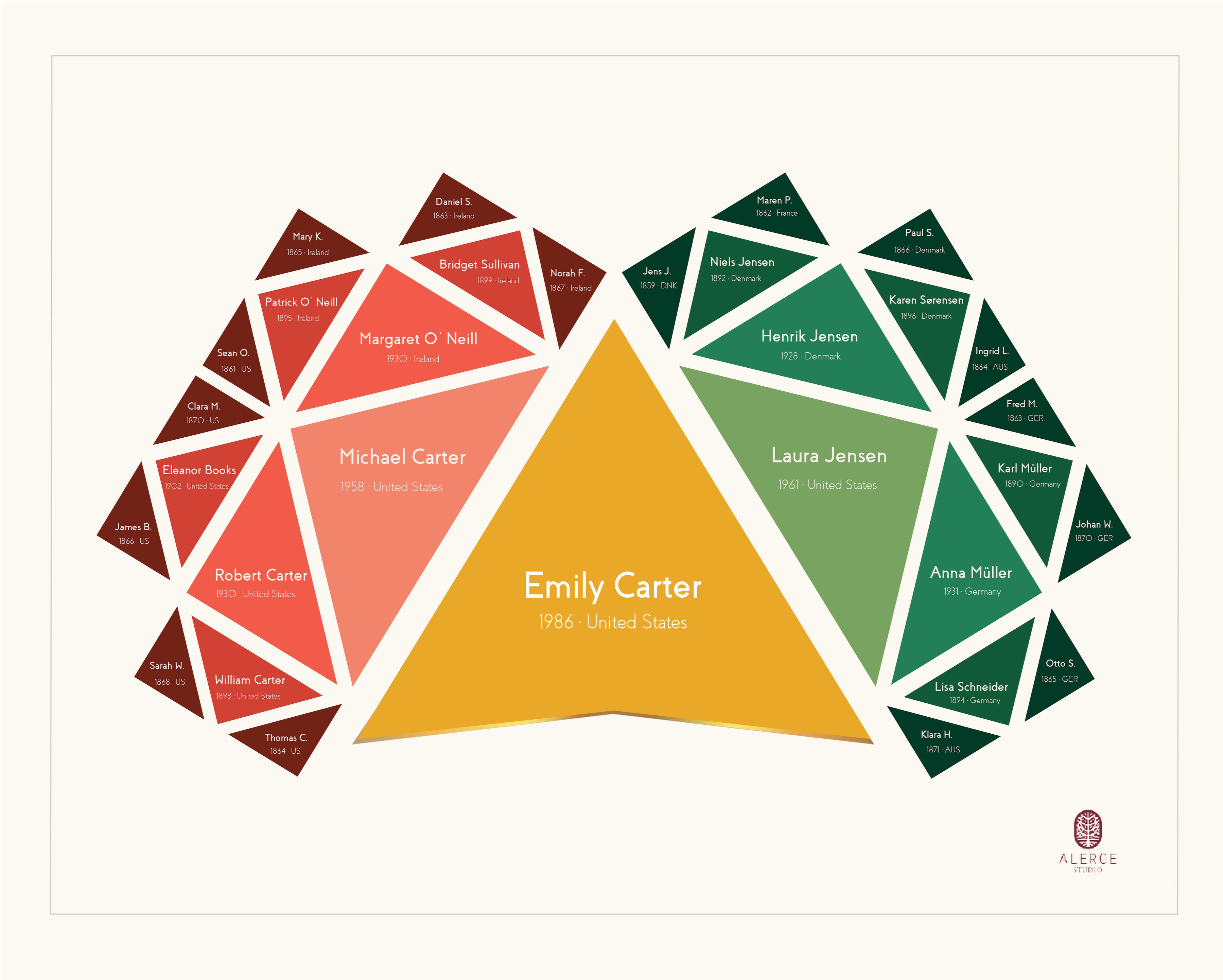 The most proportionate generational composition. A structure centered on one individual or one couple, extending to parents, grandparents, and great-grandparents.The most balanced and commissioned edition.