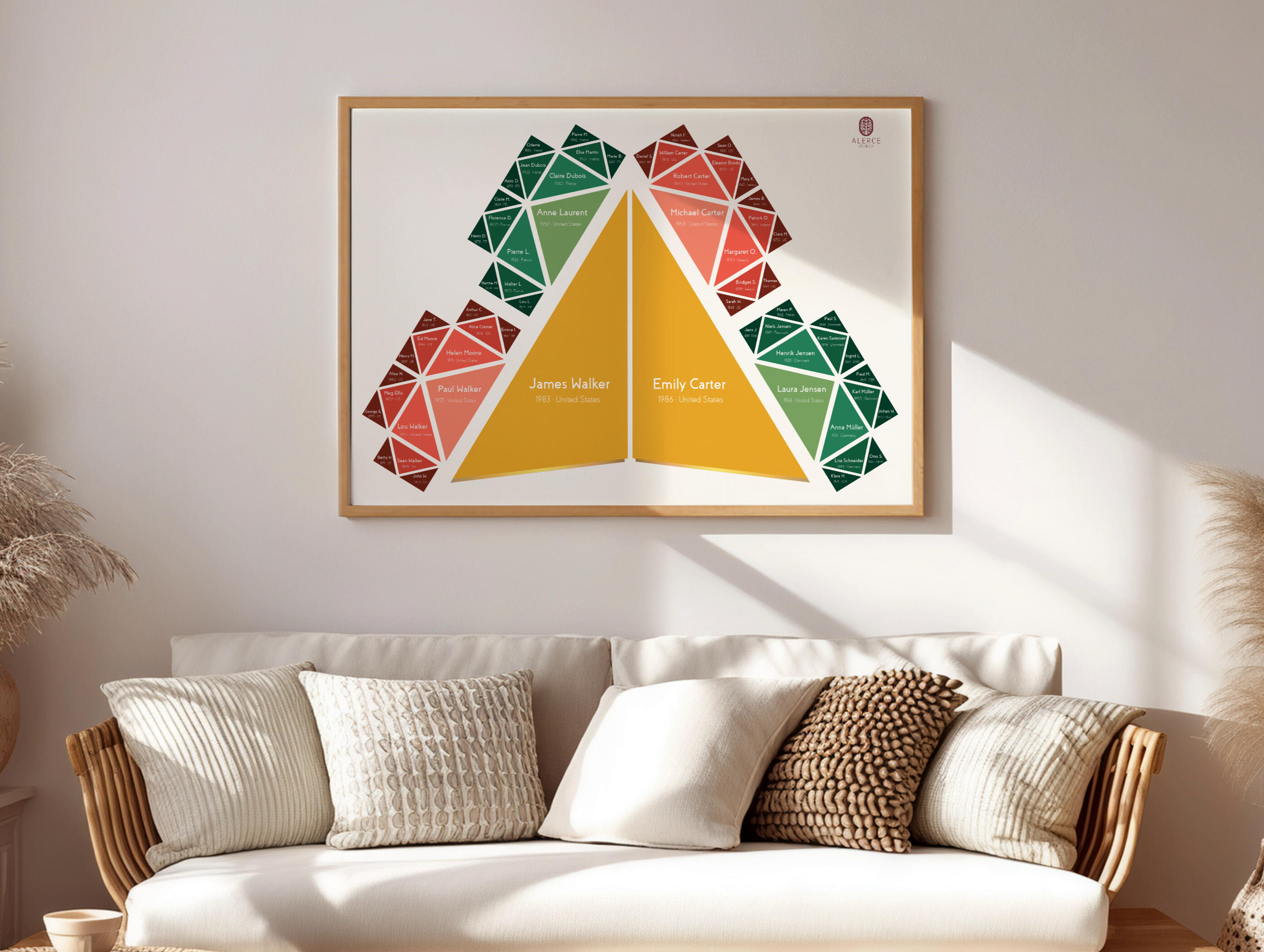 Professional genealogical research can be commissioned separately through Alerce Genealogy. Research and design can be developed alongside one another.